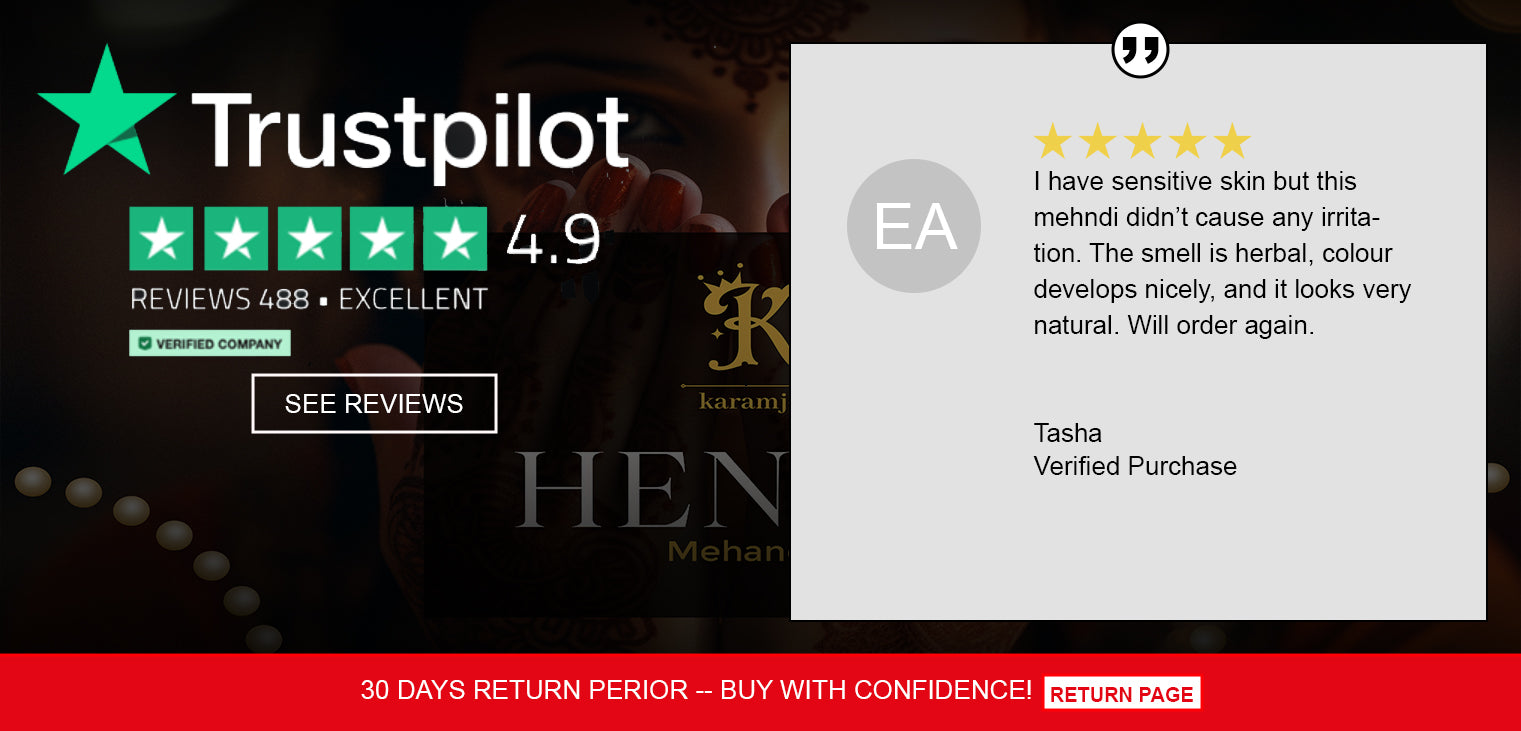 "I have sensitive skin but this mehndi didn’t cause any irritation. The smell is herbal, colour develops nicely, and it looks very natural. Will order again."