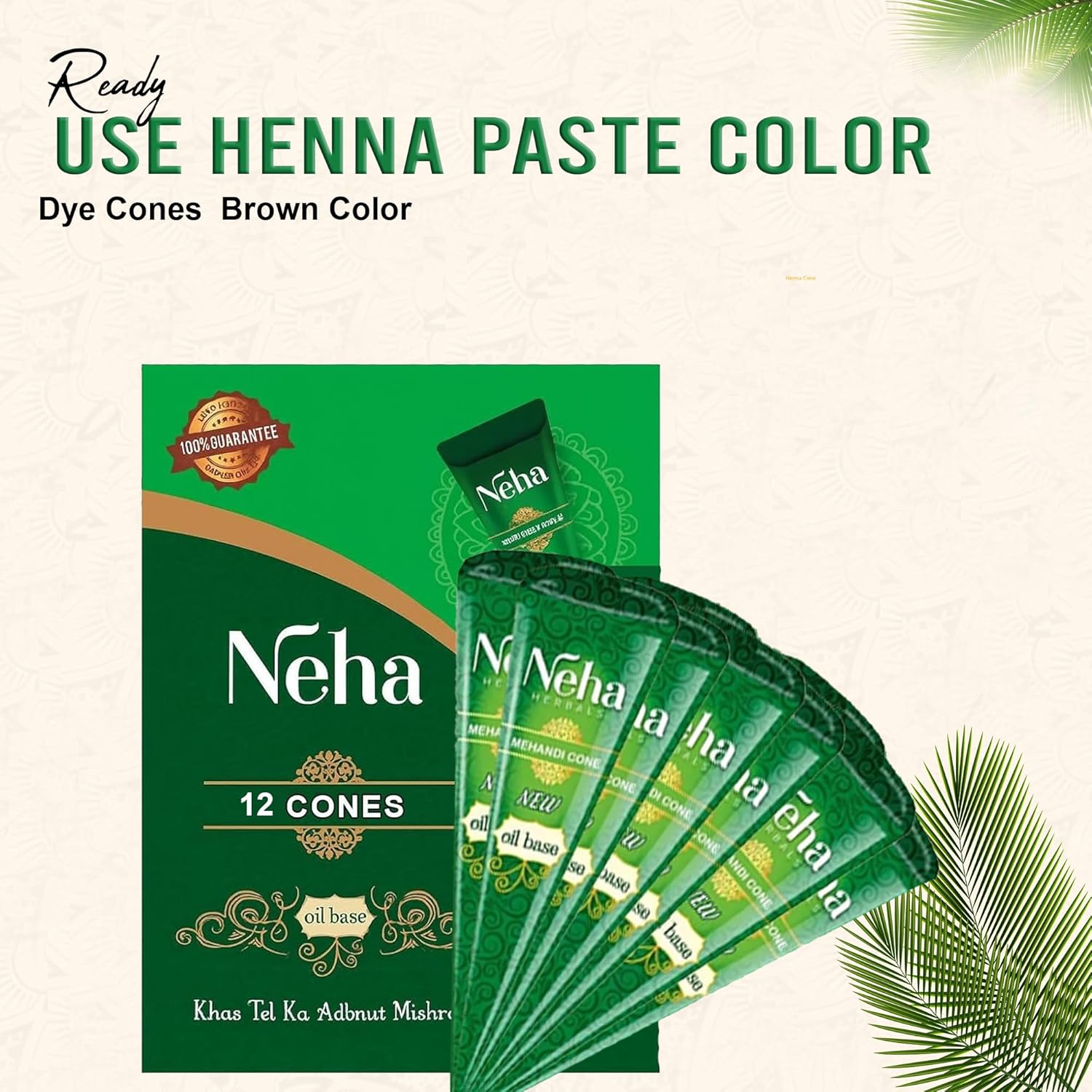 Neha Herbal Henna Cones – 100% Natural Mehndi for Hands & Body Art (Box of 12)